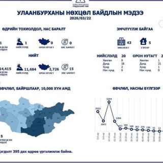 Улаанбурхан өвчний батлагдсан тохиолдол 14,415-д хүрч, 43 хүн эмнэлэгт хэвтэн эмчлүүлж байна