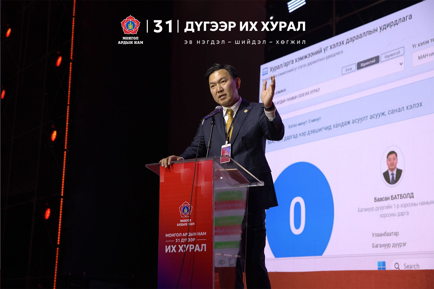 МАН-ын их хурлын 2247 төлөөлөгчийн олонхийн санал буюу нийт төлөөлөгчдийн 94.7 хувийн санал авч Н.Учрал МАН-ын даргаар сонгогдлоо.