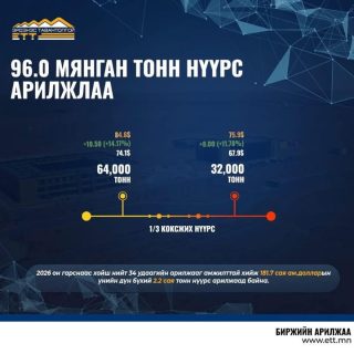 Эрдэнэс Тавантолгой 96 мянган тонн нүүрсийг амжилттай арилжлаа