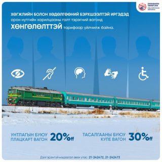 Хөгжлийн бэрхшээлтэй иргэд орон нутгийн галт тэрэг, нийтийн тээврээр хөнгөлөлттэй зорчдог боллоо